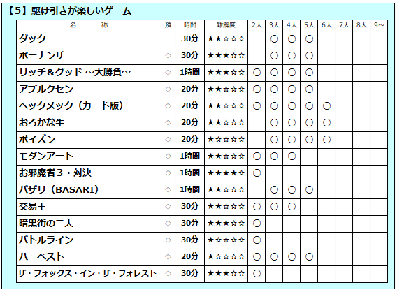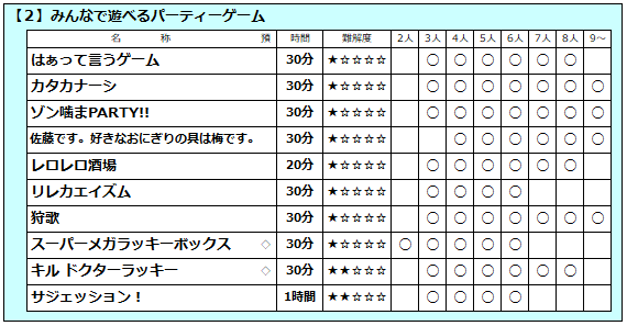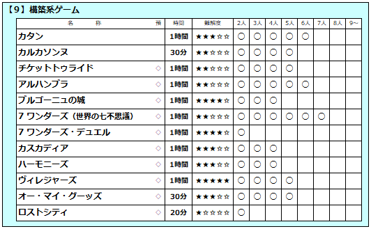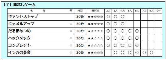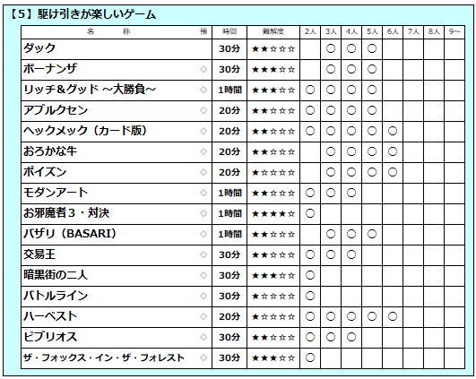 <<<店内ボードゲーム一覧>>>